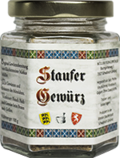 Unser leckerer Grillhals wird mit dem Staufer Gewürz unseres Küchenmeisters Markus Müller zubereitet. Wer Zuhause auch damit kochen möchte kann das Staufer Gewürz im 100g Glas bei uns kaufen.